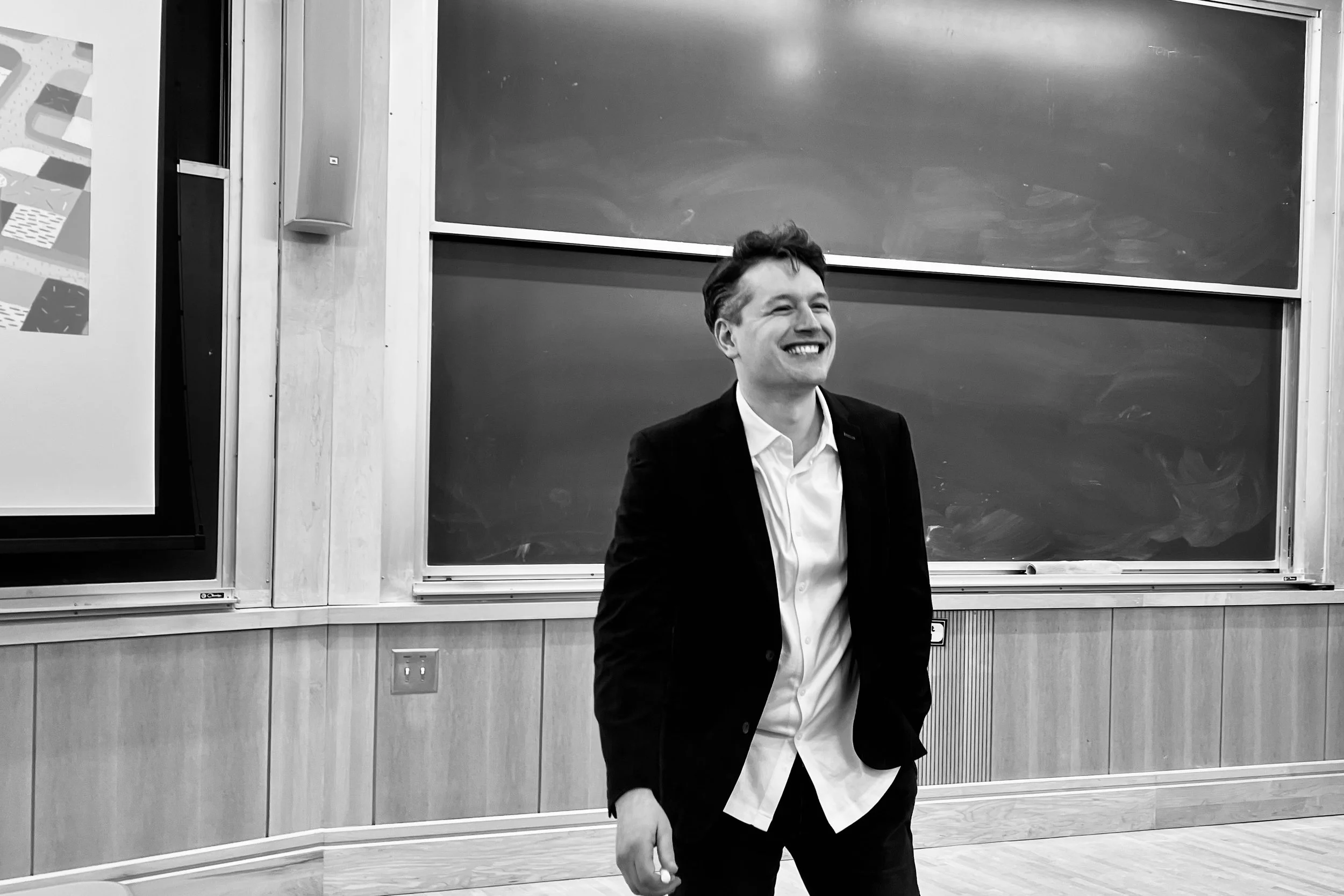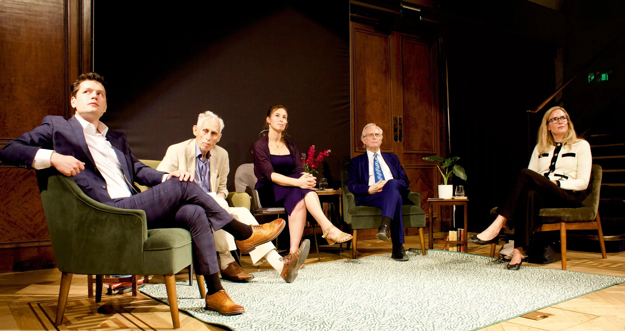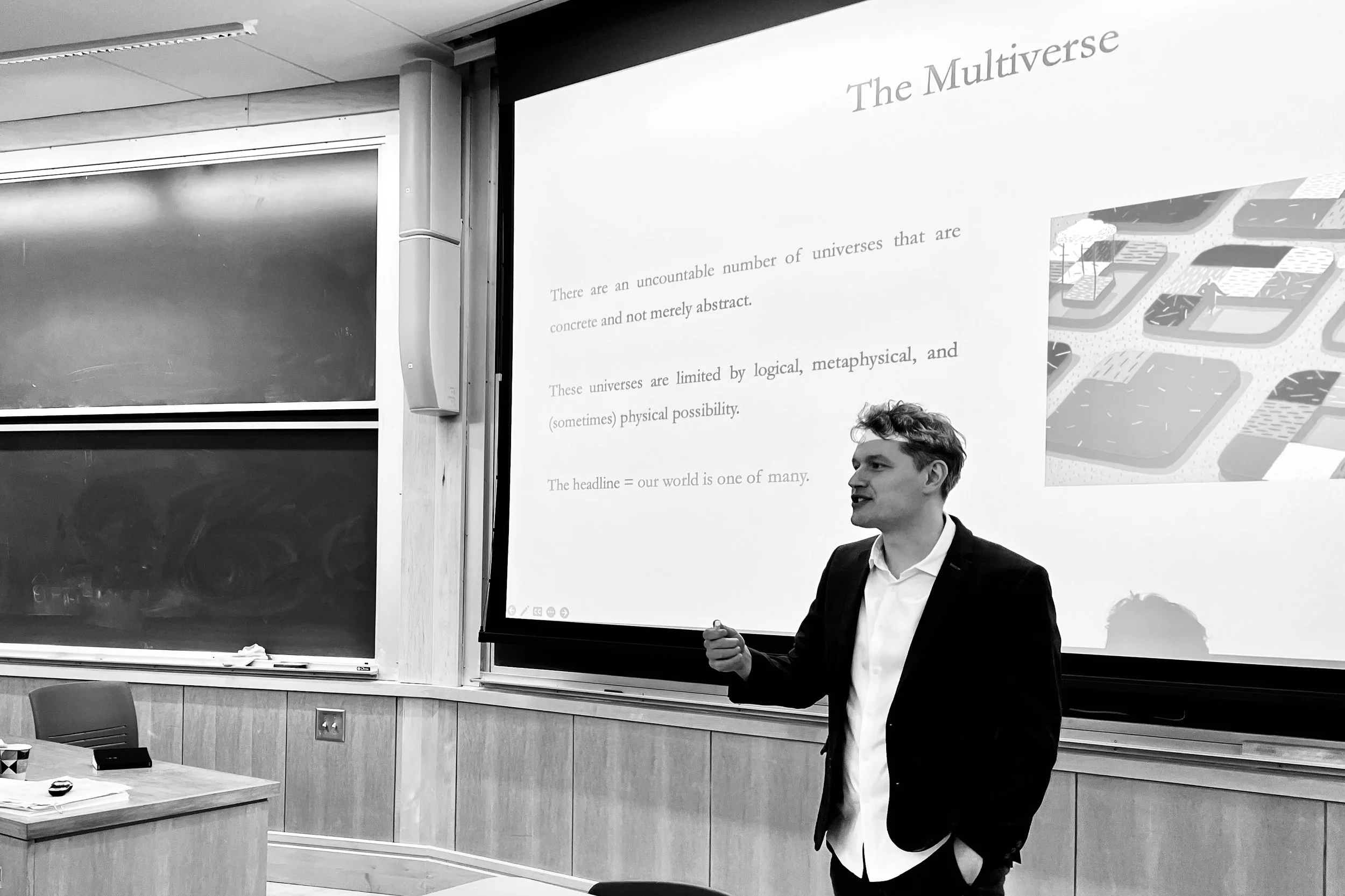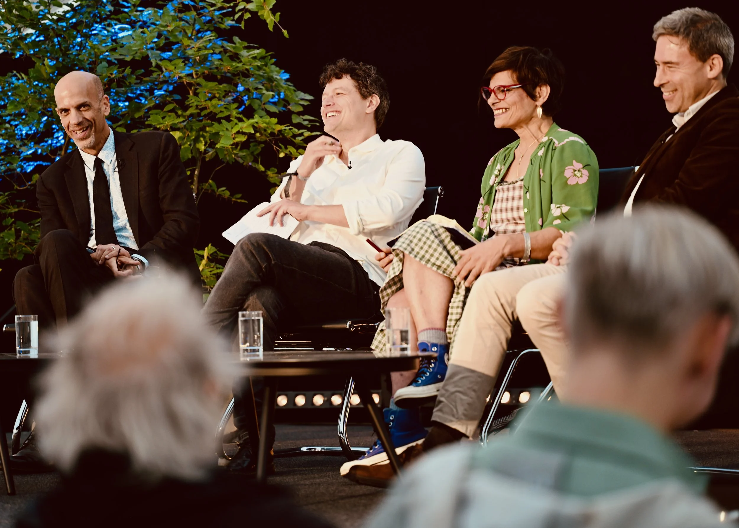 A gallery of photographs featuring philosopher Jack Symes at talks, festivals, and media appearances.